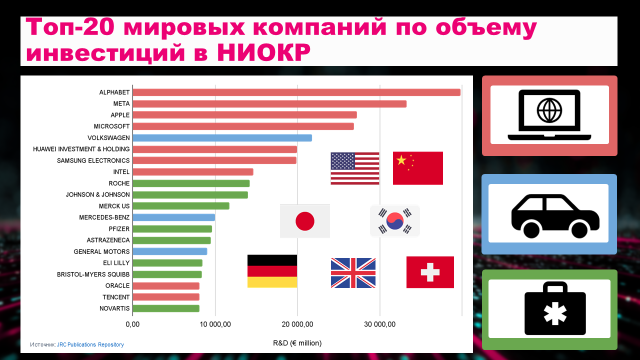 В этот элитный клуб трёх процентов входят прежде всего технологические гиганты США. Безоговорочным лидером остается Alphabet (Google), направившая на исследования и разработки почти 40 миллиардов евро только в 2024 году. Следом идут Meta, Apple и Microsoft — компании, чьи инвестиционные программы стали эталоном для всей индустрии.
