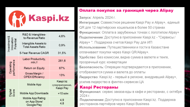 Kaspi.kz — это не просто цифровая платформа, а ведущий финтех-суперприложение Казахстана, ярко демонстрирующее, как стратегические инвестиции в инновации в сочетании с высочайшей операционной эффективностью создают устойчивое конкурентное преимущество на рынке.