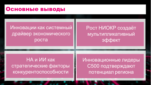 В современной экономике именно нематериальные активы и искусственный интеллект становятся ключевыми факторами конкурентоспособности. Они формируют своего рода «производственную базу» XXI века, определяя, какие компании и страны получат доступ к самому ценному — капиталу, передовым технологиям и новым рынкам сбыта. Опыт инновационных лидеров рейтинга С500 наглядно доказывает, что этот путь не только возможен, но и уже приносит результаты в нашем регионе. Их успех — лучшее подтверждение тому, что системный подход к инновациям работает, а главное — его методику можно и нужно масштабировать на другие компании и отрасли, чтобы заложить основу для будущего экономического прорыва.